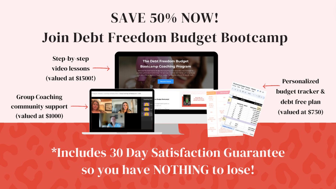 Don’t let another day go by stressing about your finances. The Debt Freedom Budget Bootcamp system was created to help you take control of your money life for good! SAVE 50% off now.