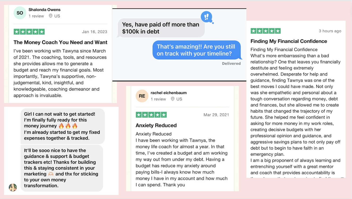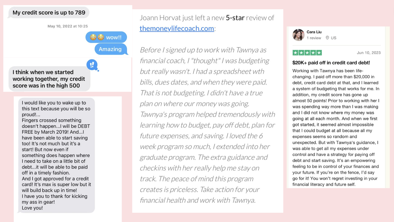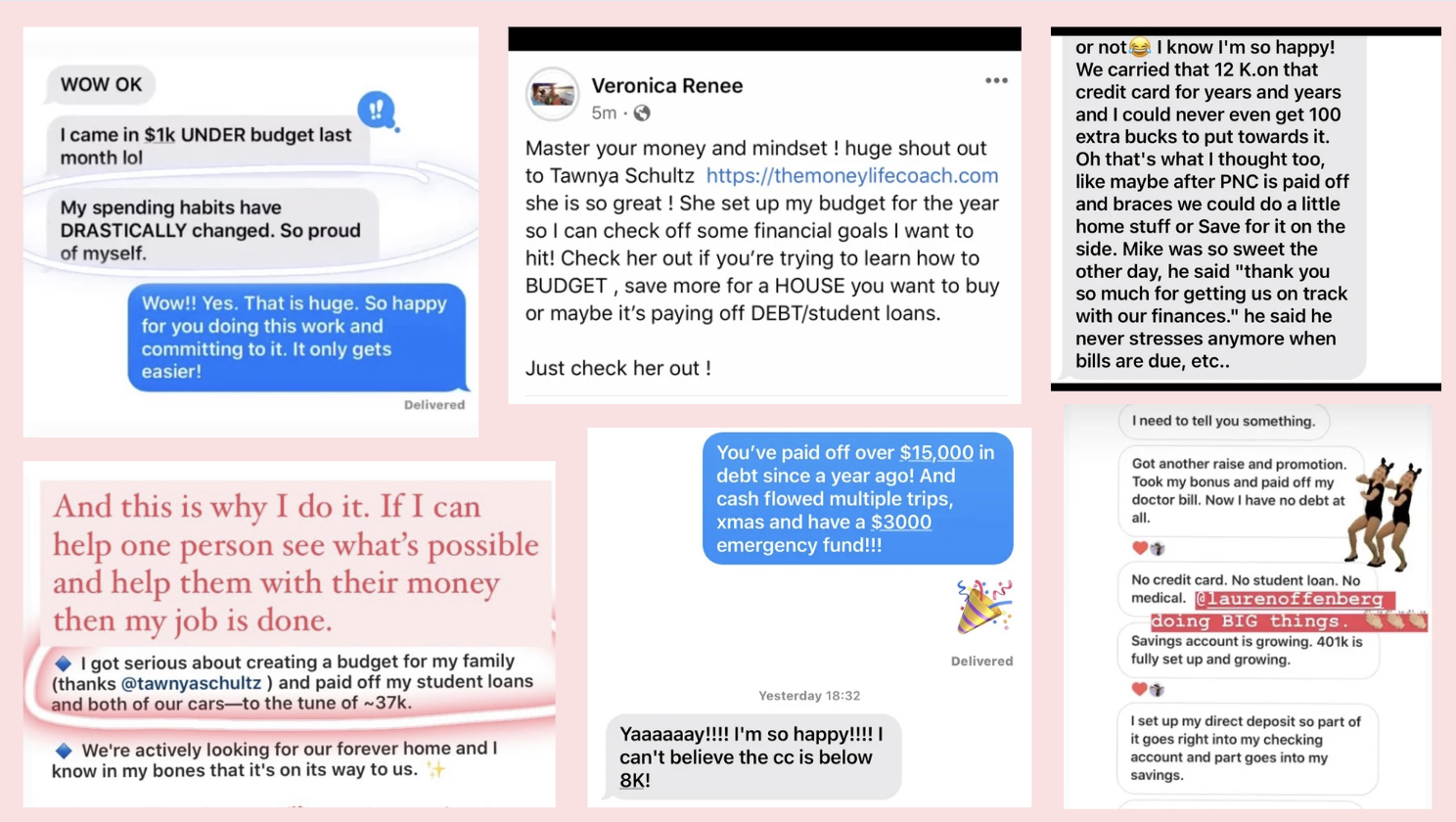 4 Live group coaching calls with Tawnya who's helped 80+ people pay off $1M since 2020 (Valued at $1000)